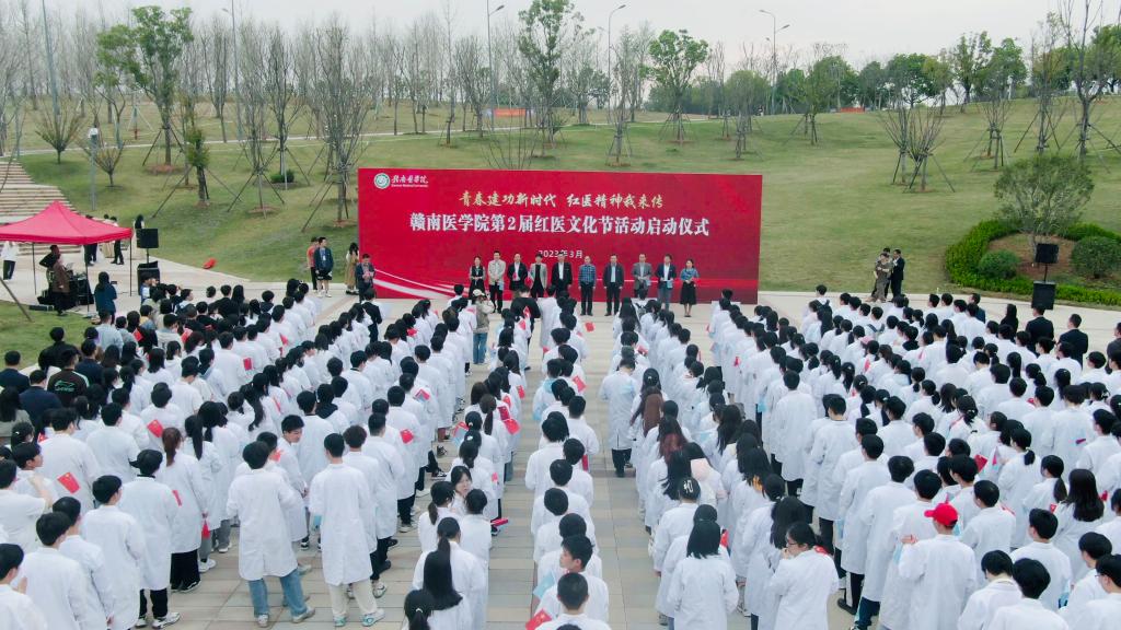 杏林莺啼花似锦,赣医更大正当时。3月16日下午,我校2023年红医文化节活动启动仪式在黄金校区西医园小广场举行。学校党委副书记曾泽鑫,学校党委委员、统战部部长赖传景出席活动。学生工作部(处)、校团委、各下属学院分管学生工作领导、全体辅导员老师、红医班级班主任及红医班级学生代表400余人参加仪式。