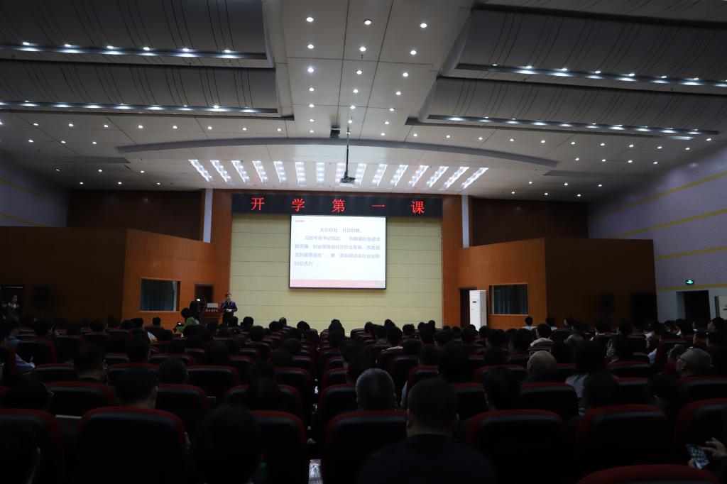 3月18日晚,学校党委书记李恭进在黄金校区为师生讲授开学第一课。在家校领导一起现场聆听了讲课。