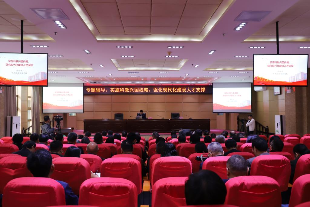 3月31日上午,2023年全校处级干部学习贯彻党的二十大精神专题研讨班继续进行,江西省委党校公共管理学教研部副主任、副教授邓顺平应邀到校作题为《实施科教兴国战略,强化现代化建设人才支撑》的辅导报告。学校党委委员、统战部部长赖传景主持。