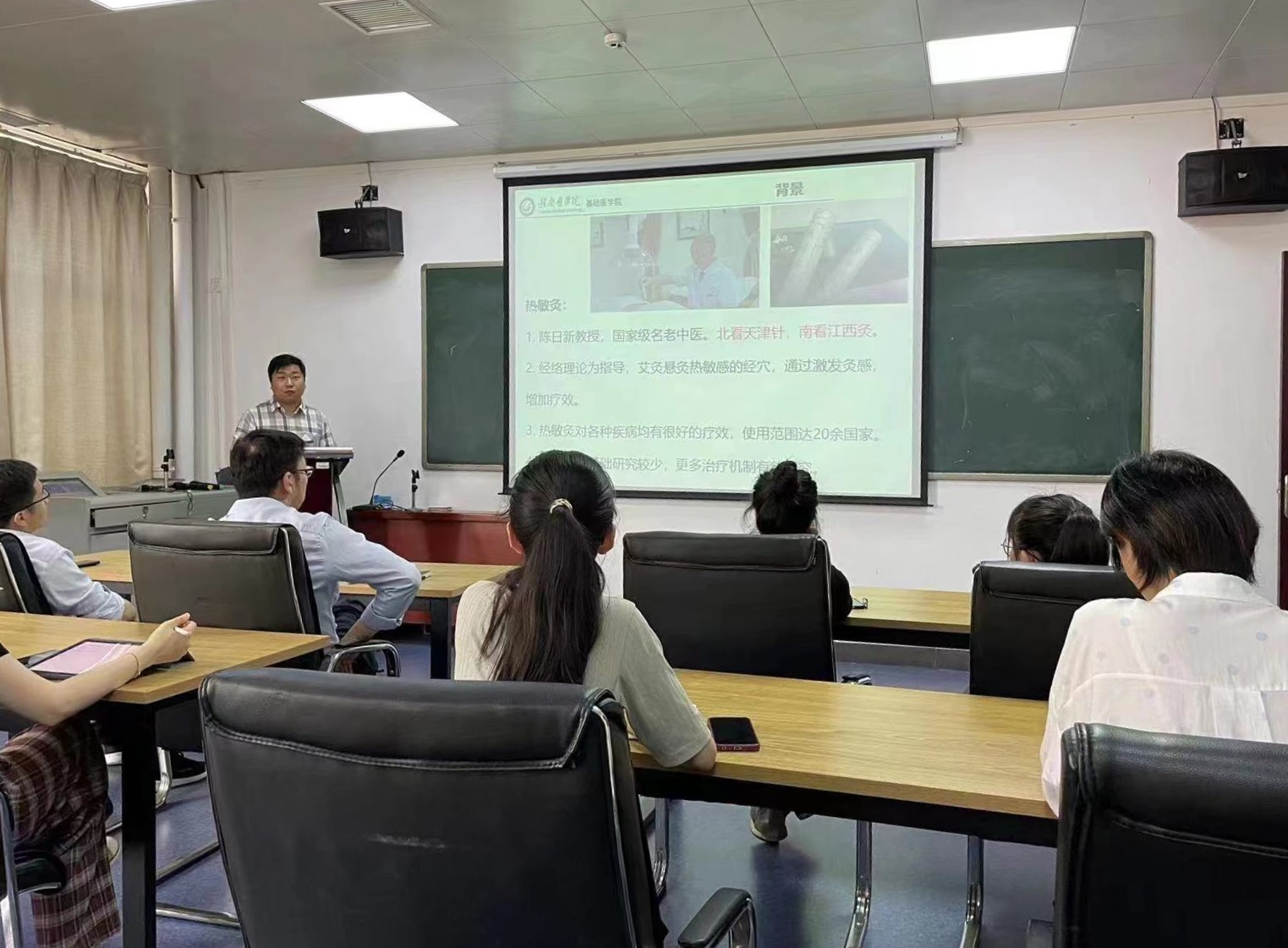 刘东旭以“热敏灸对肠易激综合征模型大鼠肠道炎症的作用机制”为题,讲述了热敏灸治疗肠易激综合征的背景和优势,介绍了炎症后肠易激综合征模型大鼠的造模方法及评估标准,阐述了热敏灸治疗可以缓解炎症后肠易激综合征模型大鼠的肠道超敏现象,以及热敏灸治疗可能通过调控NLRP6/Nrf2信号通路改善模型大鼠肠道低度炎症和氧化应激反应。