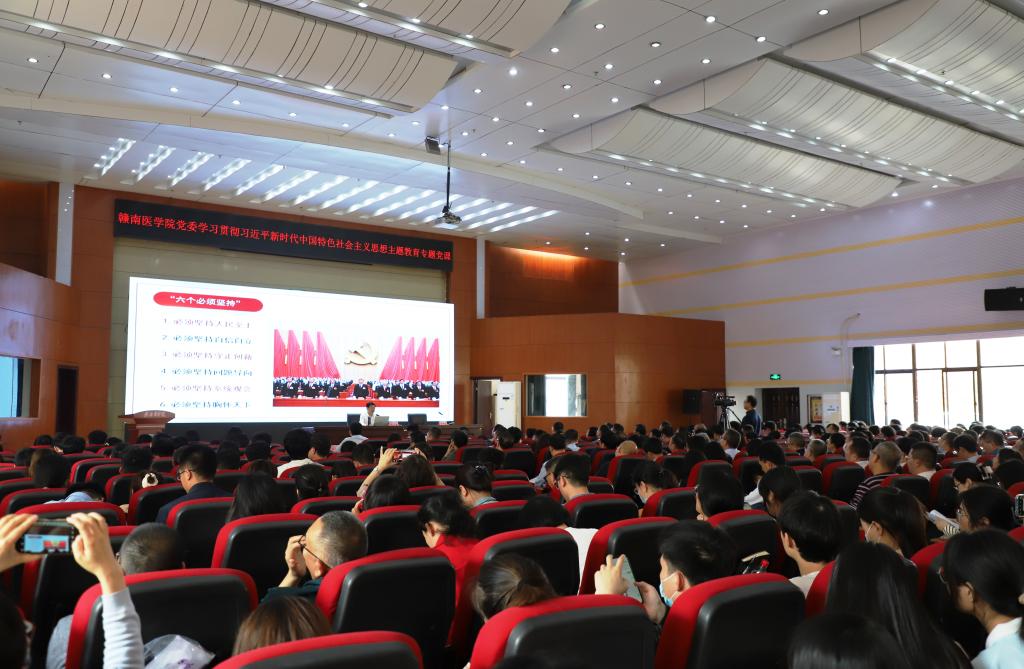 全校副处级以上干部、机关全体科级干部、校本部各党支部书记、全体学工干部、马克思主义学院全体教师、主题教育领导小组办公室全体工作人员、学生代表等400余人现场聆听专题党课。