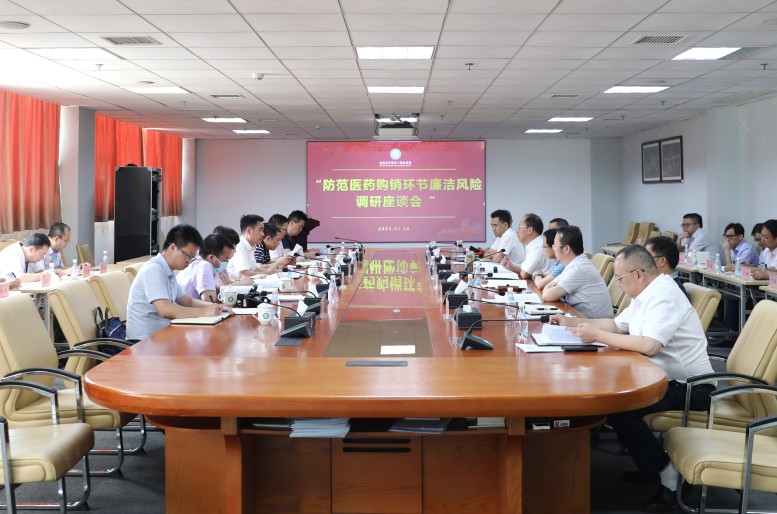 座谈会上,黄海军介绍了调研的目的和意义,听取了医院关于防范医药购销环节廉洁风险的情况汇报,并与医院有关人员进行了个别访谈。