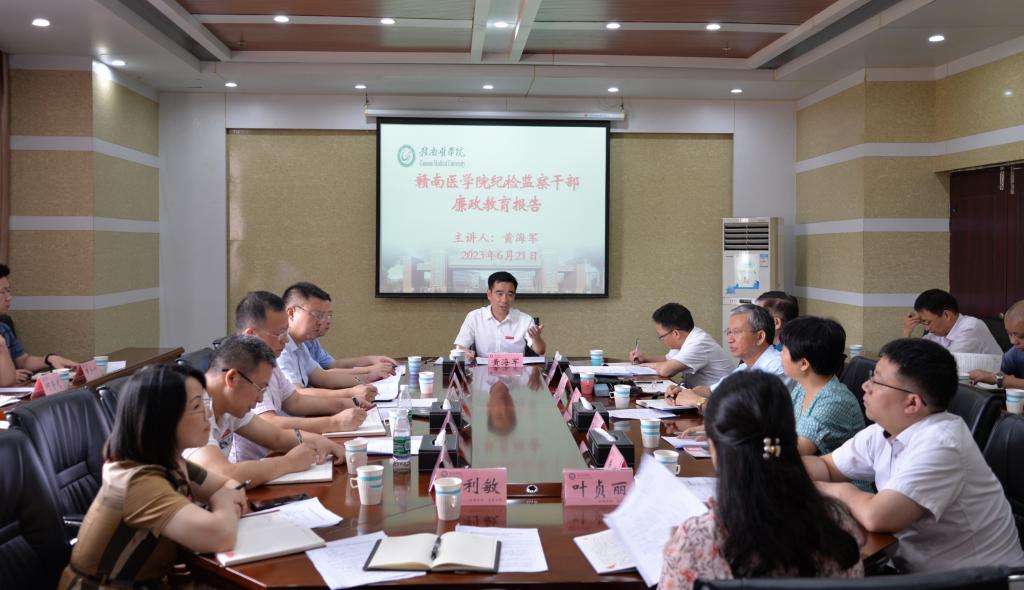 6月21日,学校召开全校专兼职纪检监察干部警示教育会,学校党委委员、纪委书记、省监委驻赣南医学院监察专员、二级高级监察官黄海军出席并作廉政教育报告。