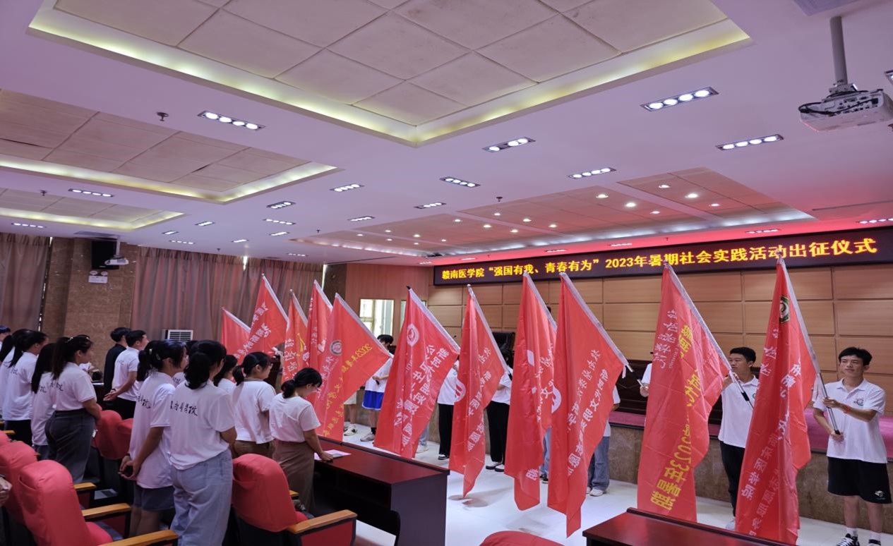 出征仪式在庄严的国歌声中拉开帷幕,赖传景为我校各实践团队代表授旗并讲话,校团委副书记郑直介绍了我校2023年大学生暑期“三下乡”社会实践活动整体情况,护理学院2022级专硕邓艳青同学代表实践队员发表出征感言。