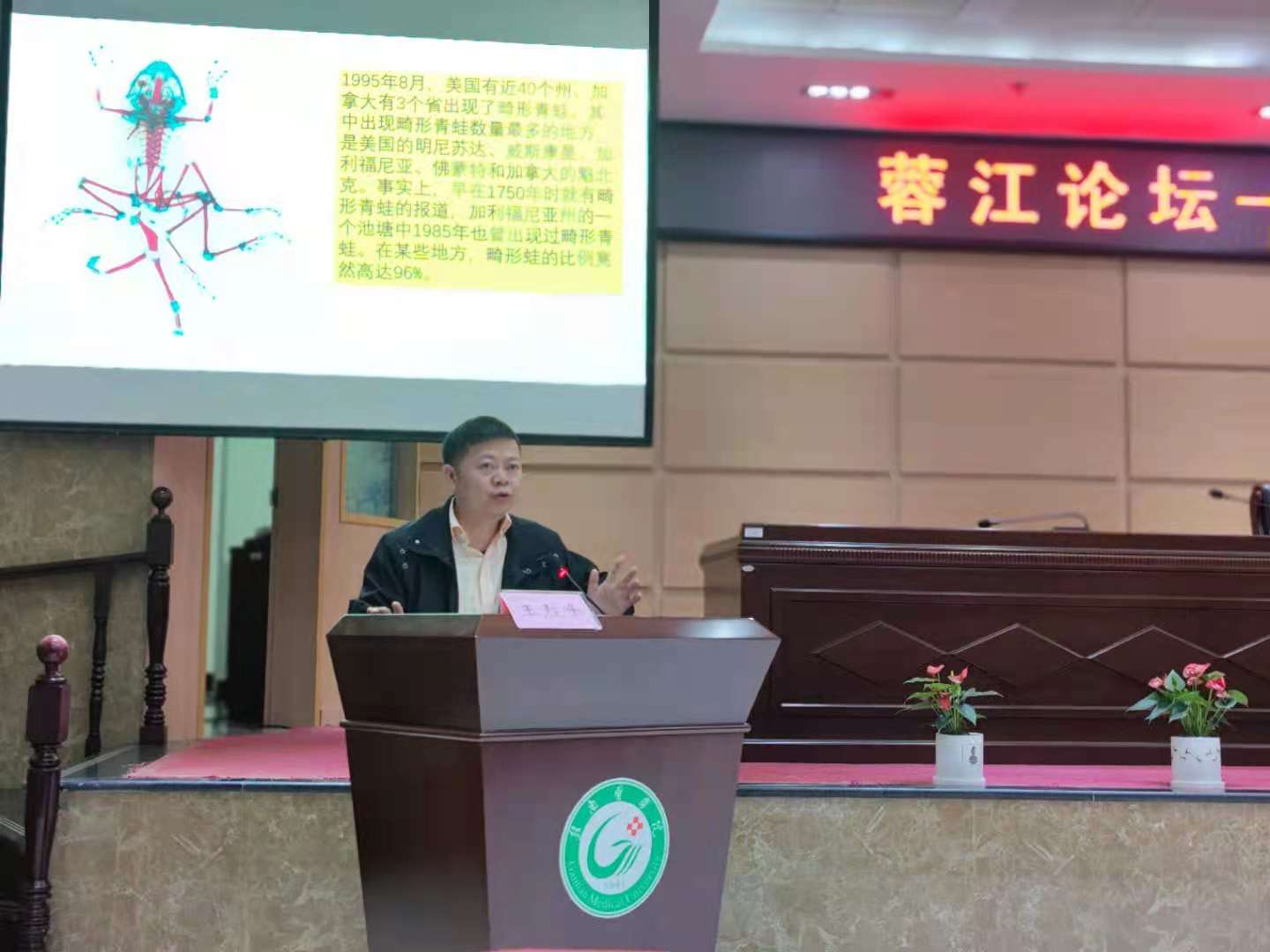 王烈峰以“走进赣南医学院——开启你的科研人生路”为题,介绍了学校的科研状况及科研取得的成效;以畸形蛙为例引入“如何开展科研”、“制定科学研究策略”;以疾病为例指导并启发我们怎样养成科研思维。