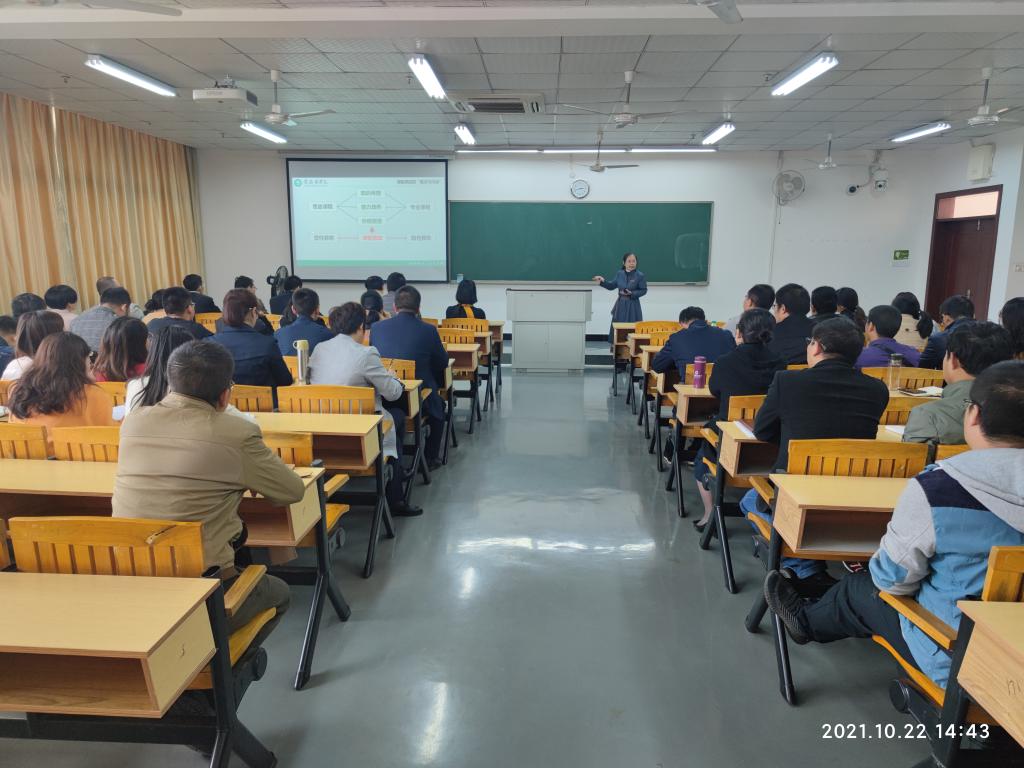10月22日,“蓉江论坛”药学院分论坛开讲。论坛邀请了我校国家级“课程思政示范课程”—《生物化学与分子生物学》课程负责人、基础医学院副院长罗晓婷,作题为“课程思政的教学设计理念与方法”专题讲座。药学院院长范小娜主持,学院全体教师聆听讲座。