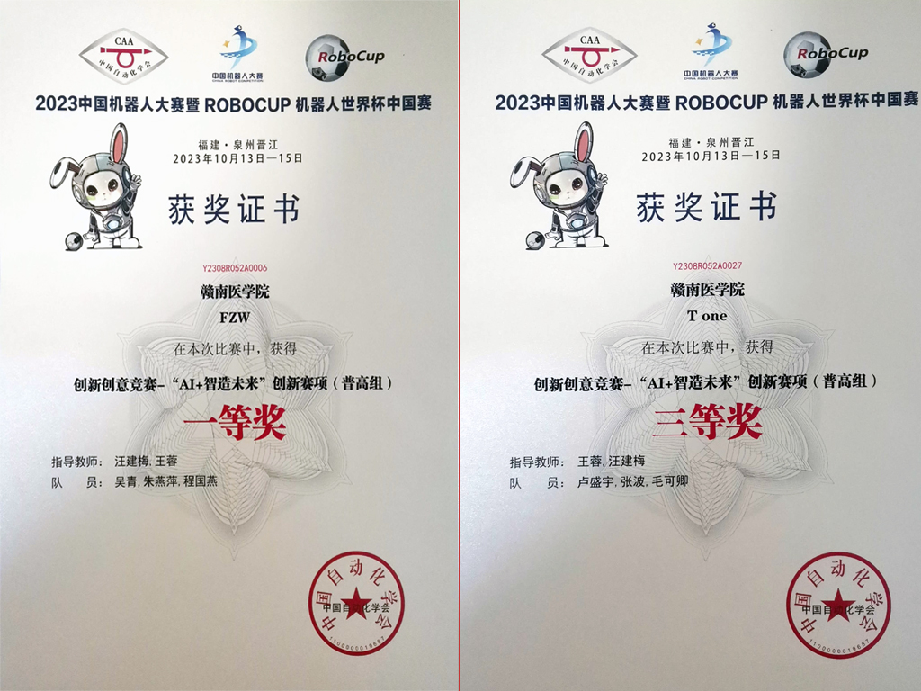 近日,从2023年中国机器人大赛暨RoboCup机器人世界杯中国赛组委会获悉,医学信息工程学院参赛学生表现优异,程国燕、朱燕萍、吴青团队荣获“AI+制造未来”创新赛项国赛一等奖,卢盛宇、毛可卿、张波团队荣获国赛三等奖。