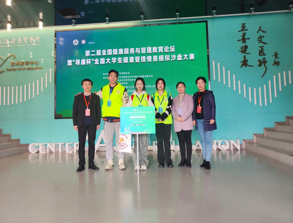 经过健康管理方案设计和健康管理决策沙盘模拟等环节的激烈角逐,由我校公共卫生与健康管理学院李钧、温华斌两位教师指导的健康服务与管理专业学生徐丹旎、陆韩政、李雨欣组成的“砥砺正行”队斩获全国一等奖,获得奖金1000元,李钧、温华斌两位教师荣获优秀指导教师奖。