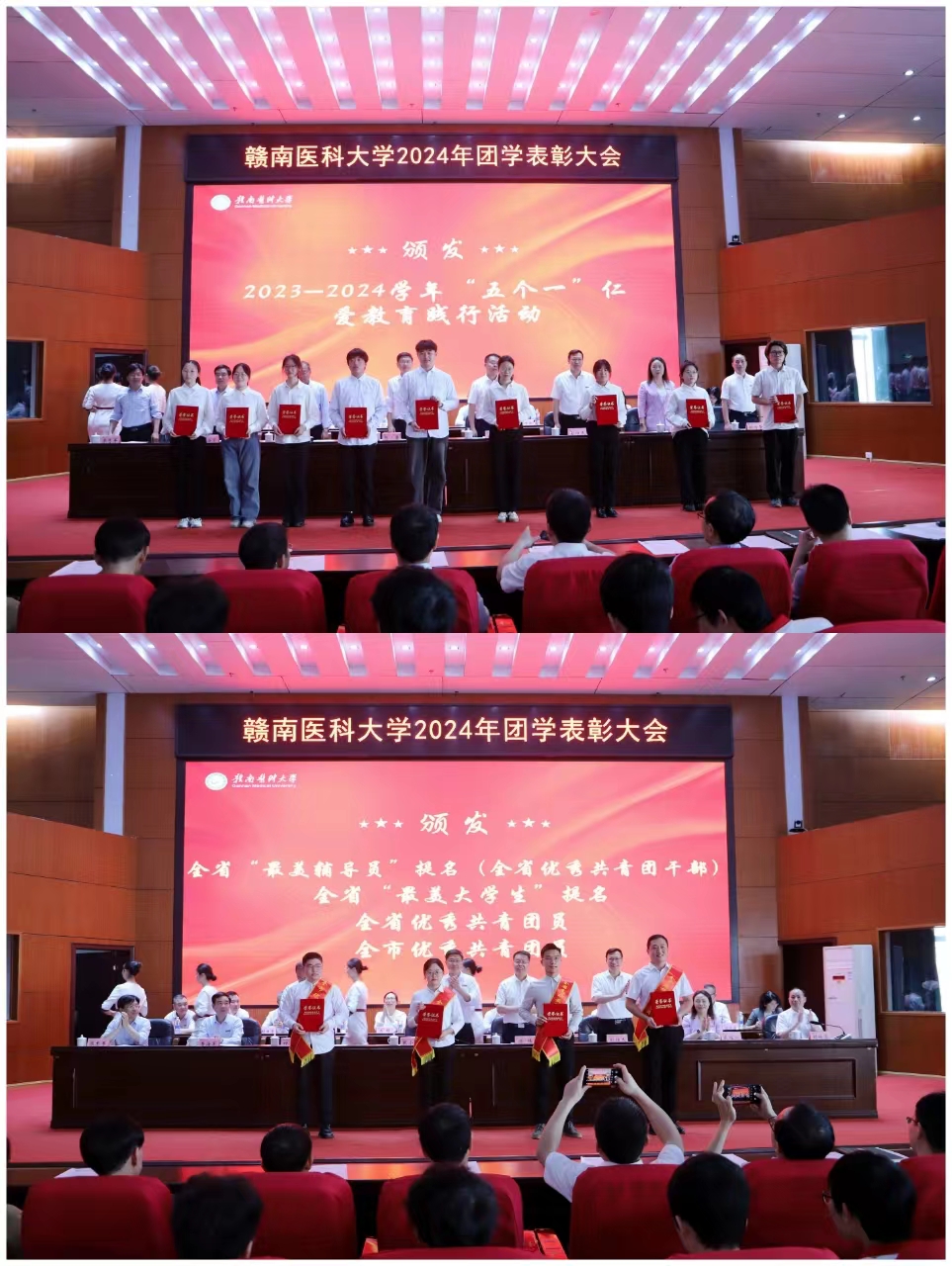 张小康指出,过去一年,学校成功更名大学,实现了几代赣医人的夙愿。全校团学工作者在学校党委的坚强领导下,始终坚持以习近平新时代中国特色社会主义思想为指导,深入学习贯彻党的二十大和习近平总书记考察江西重要讲话精神,紧紧围绕学校中心工作,以青年大学生理想信念教育为核心,以爱国主义教育为重点,以思想道德建设为根本,以德智体美劳全面发展为目标,在党团和班级建设、学风建设、学生日常事务管理、网络思想政治教育、职业规划与就业创业指导等方面辛勤付出,为促进青年学生成长成才和推动学校事业发展作出积极贡献。