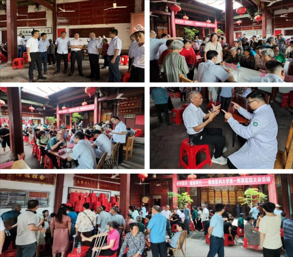 座谈会前,廖伟到西江村许氏祠堂看望正在给村民义诊的一附院专家。