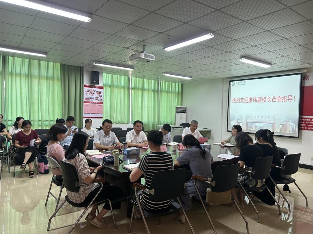7月4日,学校党委委员、副校长廖伟到人文社会科学学院调研教师思想政治和师德师风建设情况并召开座谈会,该院党政领导、全体教职工参会,党委副书记、院长赖日勇主持会议。