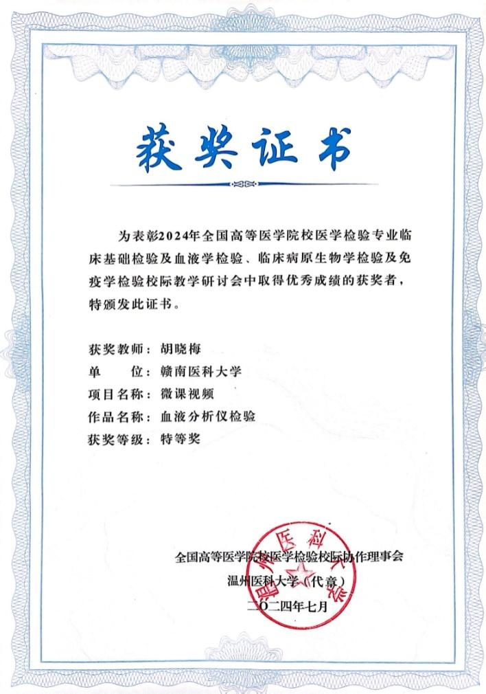 我校医学技术学院胡晓梅老师的微课作品《血液分析仪检验》,凭借其独特的教学设计、丰富的内容和深入浅出的讲解方式,成功脱颖而出,荣获大会组织的微课教学作品比赛“特等奖”。