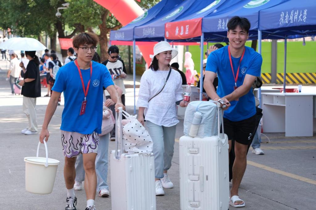 学校还在校外设置了“两站一场”(火车站、高铁站、机场)服务点,引导新生乘坐大巴专线前往学校,抵达学校后,由校内青年志愿者协助新生们搬运行李,并策划了校园迎新互动活动,开展新生家长座谈会,帮助新生们更好适应新环境,开启新生活。