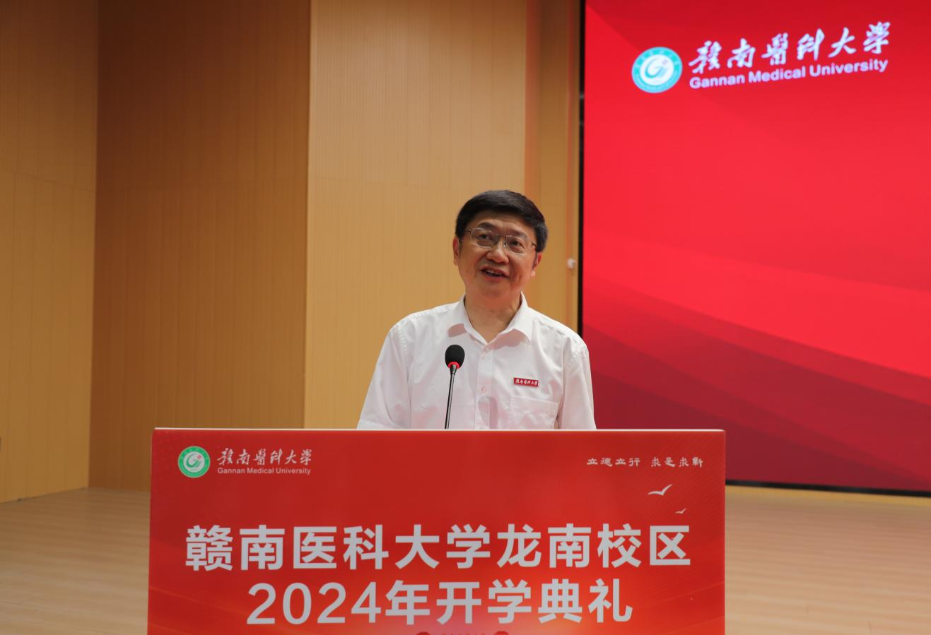 钟旭辉代表龙南市委、市政府以及龙南人民,向师生们表示热烈欢迎。他指出,赣南医科大学龙南校区的建成开学,标志着龙南拥有了第一所公办本科院校,是龙南人民期盼已久、为之振奋、倍感自豪的盛事喜事。希望同学们立凌云志、读万卷书,去浩瀚的书海中汲取知识的力量,在大学岁月里绽放青春的光芒,努力成为学有所长、业有所专、技有所精的新时代医学新人,期盼大家把龙南视作故乡、把赣医当作家园,根植这片热土、践行医者仁心,与龙南双向奔赴,共同为未来拼搏。