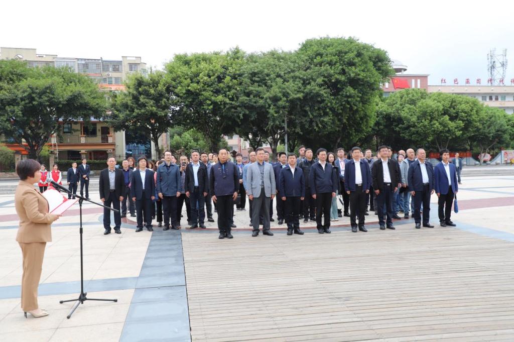 于都河畔,中央红军长征出发纪念碑巍然耸立。活动在这里开展仪式教学,全体学员向纪念碑敬献花篮并三鞠躬,姚建红、张小康代表全体学员上前整理缎带,学员们缓步绕行纪念碑,仔细察看基座上的浮雕,深切缅怀革命先烈英雄事迹,感悟峥嵘岁月。