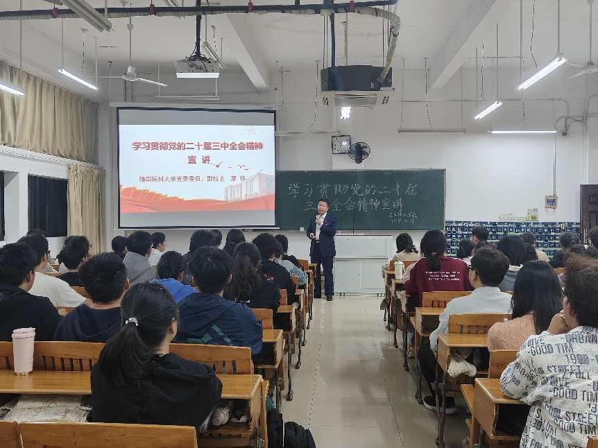 10月29日,学校党委委员、副校长廖伟到医学技术学院宣讲党的二十届三中全会精神,该院全体教职工、学生党员和入党积极分子聆听宣讲报告。
