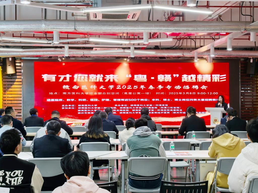 为广开引才渠道,精准引进高层次医学人才,深入推进学校高层次人才引进“百人攻坚计划”落实,为学校顺利获批博士学位授予单位、建设江西省高水平“双一流”大学的目标奠定坚实人才基础,3月8日, 由学校主办,第一附属医院承办,其它直属附属医院和相关城市医疗集团单位共同参与的赣南医科大学2025年春季专场招聘会,在南方医科大学(广州校区)举办,向南方医科大学优秀毕业生抛出“橄榄枝”,诚邀青年才俊加盟,共同服务革命老区医学教育与卫生健康事业发展。