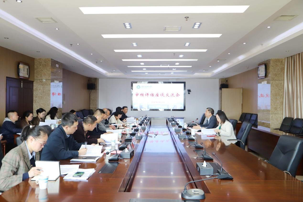 培训会结束后,还召开了审核评估座谈会,李勋就做好审核评估做了经验介绍和精准指导。盛瑶环介绍了学校审核评估整体情况。学生工作部(处)、人事处、教务处、团委、高等教育研究室等相关部门负责人及评估办全体人员参加了座谈交流。