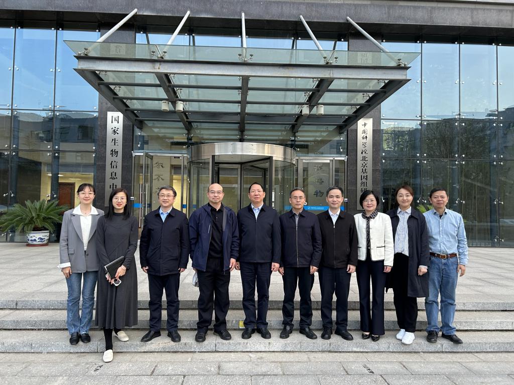 4月9日,学校党委副书记黄瑞忠,党委委员、副校长刘志平、黄孝天一行前往国家生物信息中心考察交流。