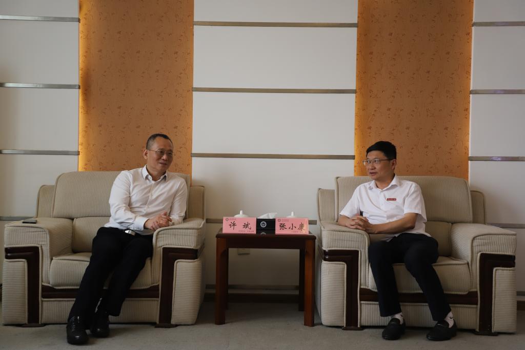 5月23日,学校党委书记、校长张小康在黄金校区会见了来访的江西省肿瘤医院党委书记许斌一行。
