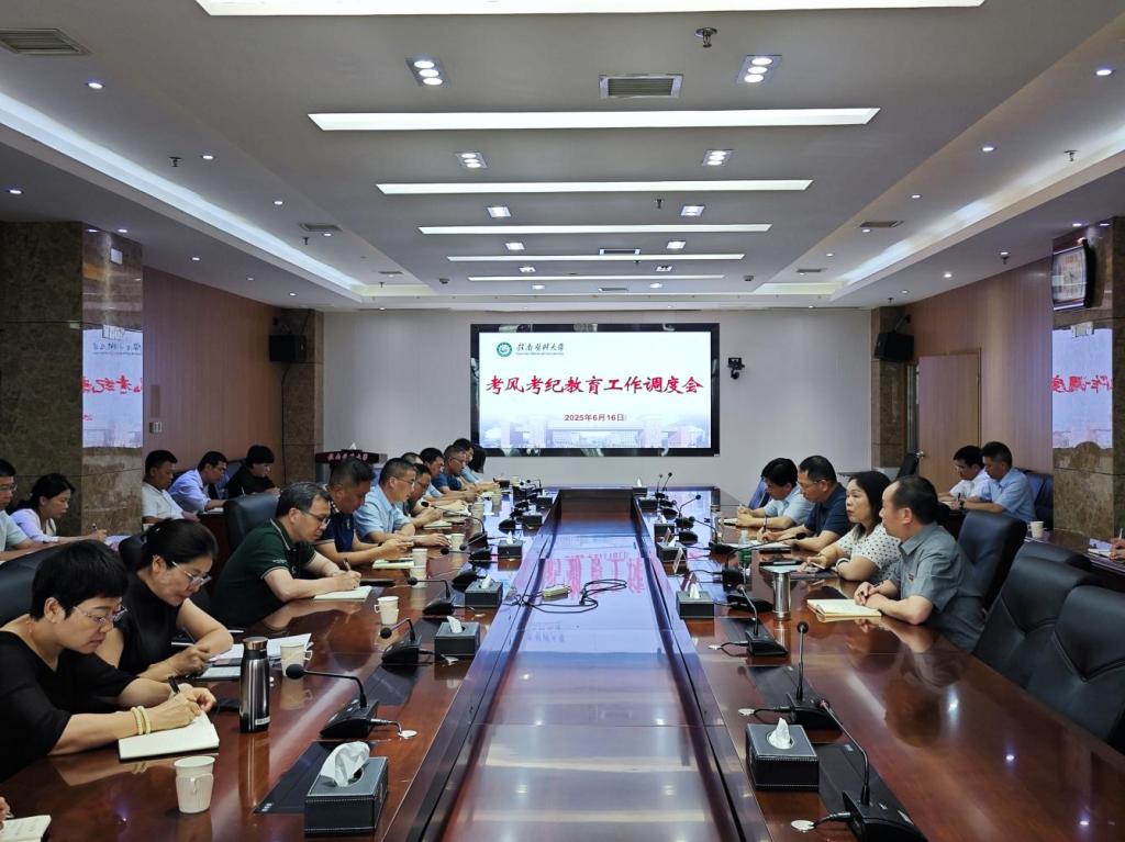 6月16日,我校召开考风考纪教育工作调度会,学校党委副书记黄瑞忠,党委常委、副校长盛瑶环,党委常委、宣传部部长廖志平出席会议,党委常委、统战部部长赖传景主持会议。