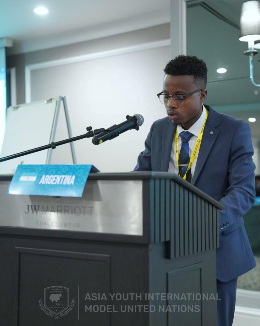 近日,我校坦桑尼亚留学生 MRINDOKO SHABANI MRINDOKO参加了在马来西亚吉隆坡举办的2025年第18届亚洲青年国际模拟联合国大会(AYIMUN),与来自45个国家的青年学子同台竞技,共同探讨全球议题,展现赣医大青年学子的国际视野与青春风采。