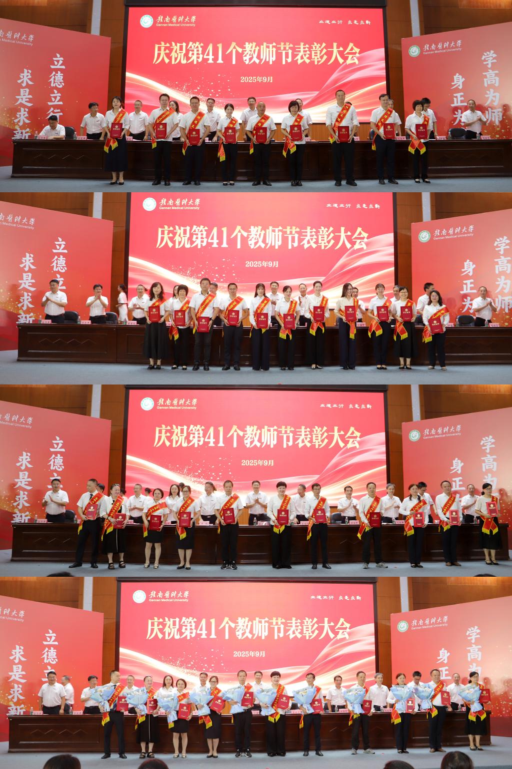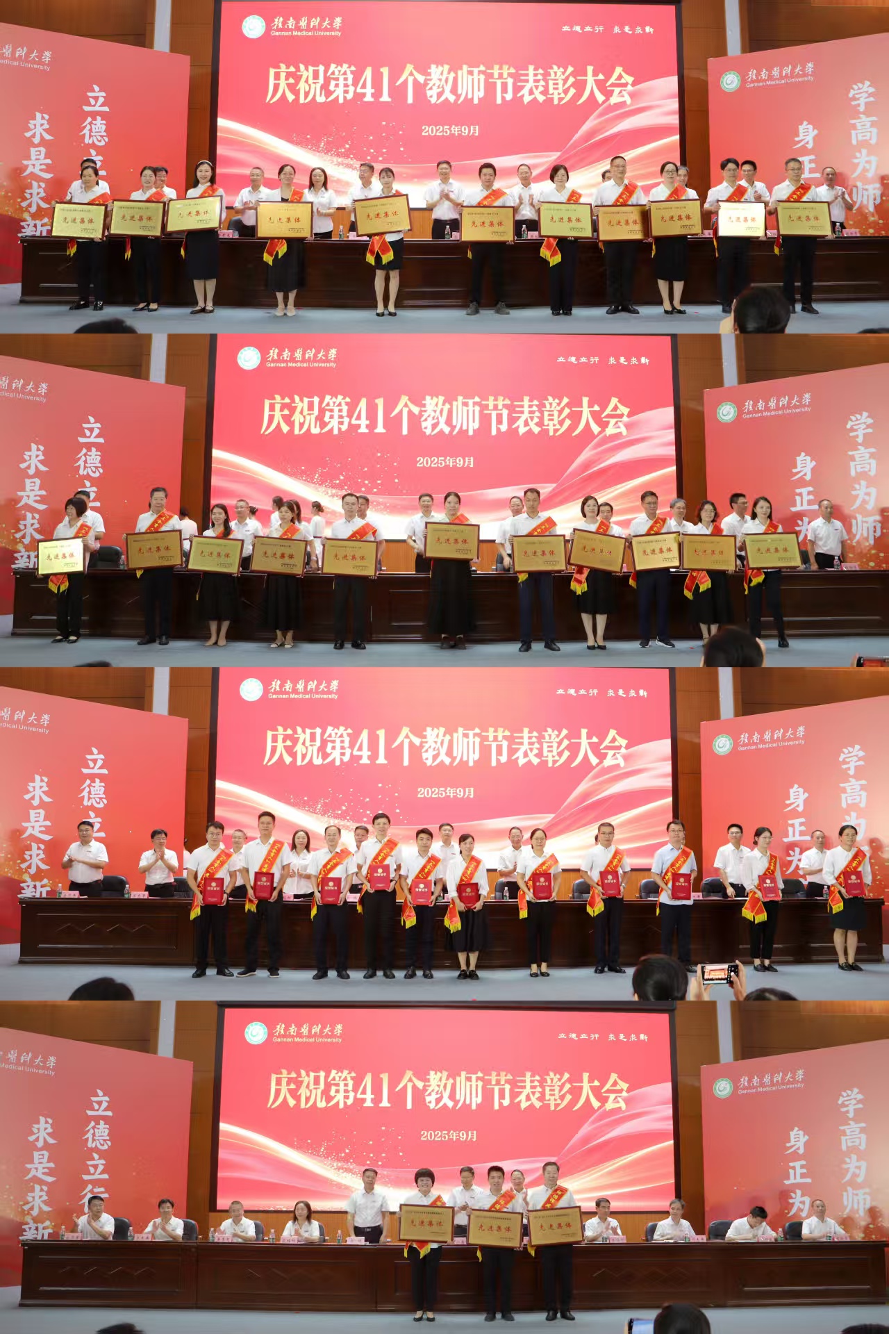 黄瑞忠在主持时强调,教育是国之大计、党之大计,作为师者,既要站稳三尺讲台,传授知识、启迪心灵,也要牢记医者使命,精进医术、救死扶伤。希望受表彰的先进集体和先进个人珍惜荣誉、继续努力,在今后的工作中取得更加优异的成绩。全体教师要以先进为榜样,不忘立德树人初心,牢记为党育人、为国育才使命,以更加饱满的热情、更加务实的作风,为培养更多高素质医学人才、为守护人民生命健康、为学校的美好明天贡献更大力量。
