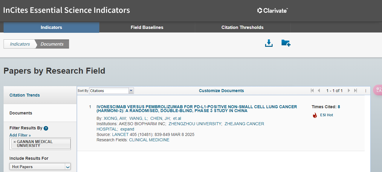 图1 赣南医科大学2025年9月入选ESI热点文献