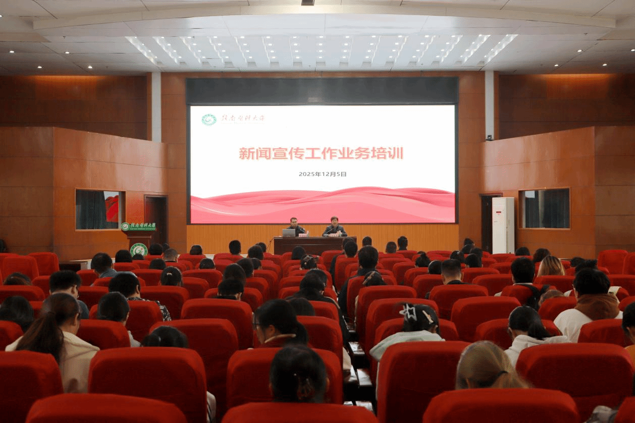 学校各部门、各学院新闻宣传工作人员,党委宣传部全体人员及融媒体中心、大学生记者团学生骨干等参加培训。