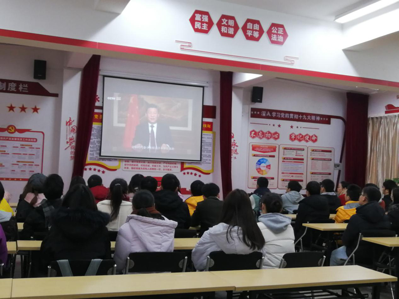 12月31日新年前夕,国家主席习近平通过中央广播电视总台和互联网,发表2019年新年贺词。一个个成就、一段段牵挂、一声声致敬,令人振奋,温暖人心。我校师生纷纷观看新年贺词直播,认真聆听重要讲话,点赞伟大成就,热议新年祝福,共同迎接2019年新年到来!