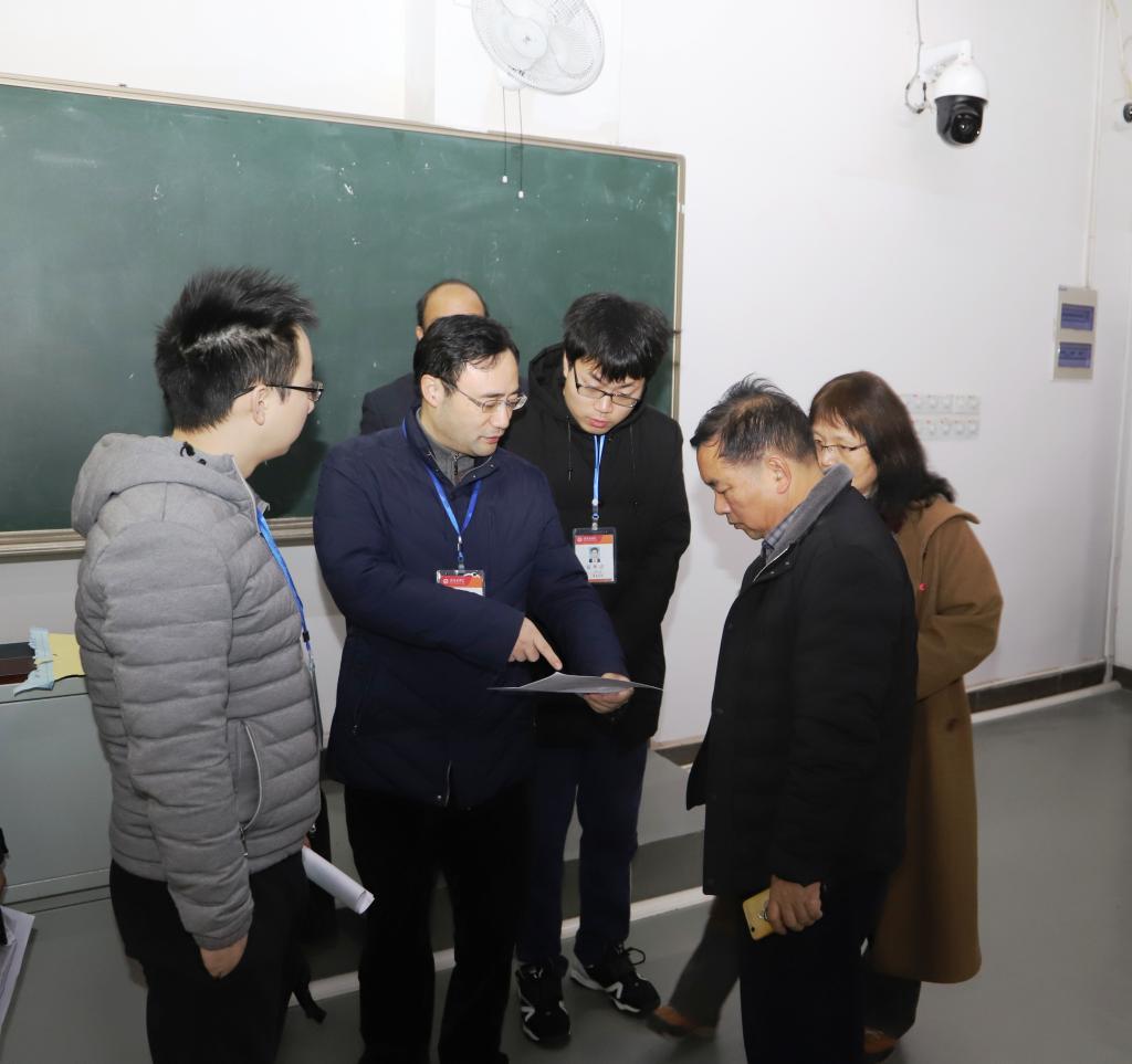 1月16日上午,学校党委副书记、校长刘潜在教务处、高教研究室、学工处、人文社科学院、信息技术与网络管理中心等负责人的陪同下,深入黄金校区期末考试考场,检查指导考试和考务工作。