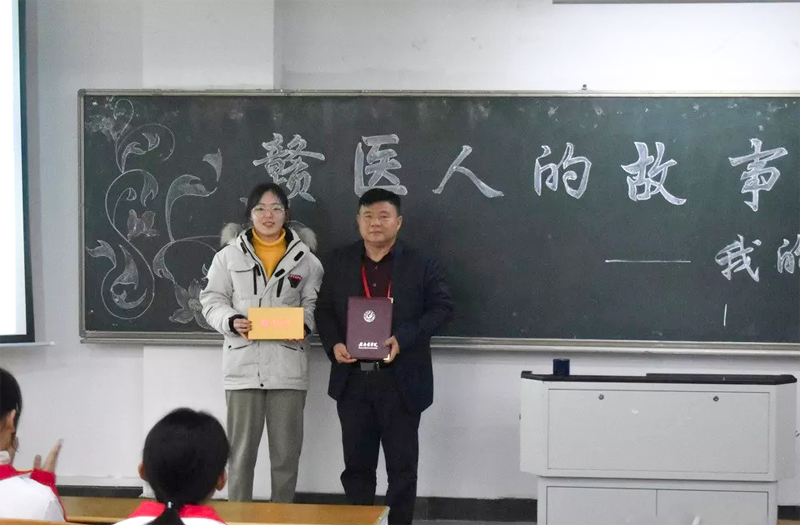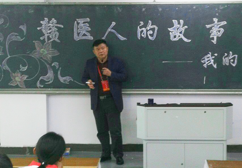 随后,声情并茂地分享了“我的前半生”的八个故事。第一个故事“我的铜锣湾,我的紫阳”讲述的是他家乡二十年来的变化,描述了坚信鸡窝里能飞出金凤凰的他,一心求学而心无旁骛的坚定决心;第二个故事“我的赣医,我的梦”,回忆了他在赣医度过的艰辛但充实的大学生活;第三个故事“我的第一个饭碗”,讲述他毕业后分配到荣军医院,因表现出色而在短短两年时间里荣升院团委书记的故事;第四个故事“春天的故事”,讲述了他舍弃第一个饭碗投奔改革开放的浪潮,勇于创业的故事;第五个故事则是围绕创业初期的艰辛及之后拥有的多项专利,诠释了“坚持就是胜利”的内涵;第六个故事“1+000000”,强调身体是革命的本钱,健康是那个至关重要的“1”,有了1才有后面的一切;第七个故事“永远是学生”,勉励同学们要常怀学习之心,无论做人还是做事都要保持学生的心态,终身学习;第八个故事“做三心三有的赣医人”,“三心”即爱心、责任心、包容心;“三有”即有想法、有思路、有目标,这些是成为一个优秀赣医人的重要要素。