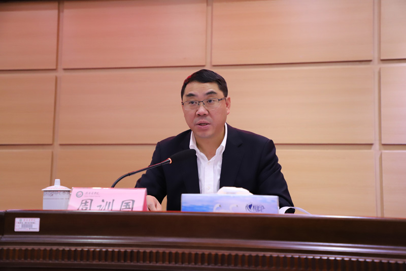 周训国肯定了学校过去一年来的工作。周训国指出,学校在省委、省政府的坚强领导下,赣州市委市政府的支持下,深入学习贯彻习近平新时代中国特色社会主义思想,认真学习领会省委十四届六次、七次全会精神,贯彻落实全国教育大会、全省教育大会和新时代全国高等学校本科教育工作会议精神,紧扣省委24字方针,落实立德树人根本任务,围绕“本科教学工作审核评估”和“更名大学”两项中心任务,以推进“人才强校、质量提升、学科建设、科研创新、校园环境改善”五大工程建设为抓手,以抓党建、改作风,不断强化内涵建设,深化教育教学改革,呈现出良好的发展态势。