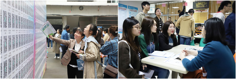 今年,学校继续推进“互联网+就业”工作模式。通过赣医就业信息网、就业APP、就业微信公众号等网络平台,在教学楼、宿舍区、食堂、招就处等地放置触摸屏,以及用人单位二维码墙、二维码等,用人单位基本实现线上资质审核、线上报名、线上发布招聘信息,毕业生网上简历代投,不受时空限制,毕业生和用人单位提前网上 “双选”,线上线下高效互动,“双选会”变成“签约会”。