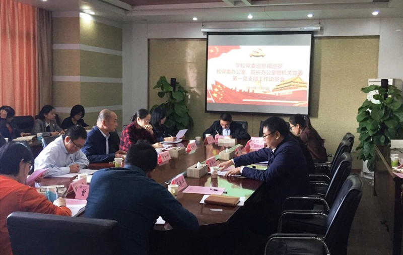 11月5日下午,学校党委巡察组召开进驻学校党委办公室、院长办公室(机关党委第一党支部)巡察动员会。学校党委委员、纪委书记肖树辉,党委委员、组织部部长甘雅芬,纪委副书记、党委巡察组组长邓文明及巡察组全体成员和学校两办全体党员、职工参会。