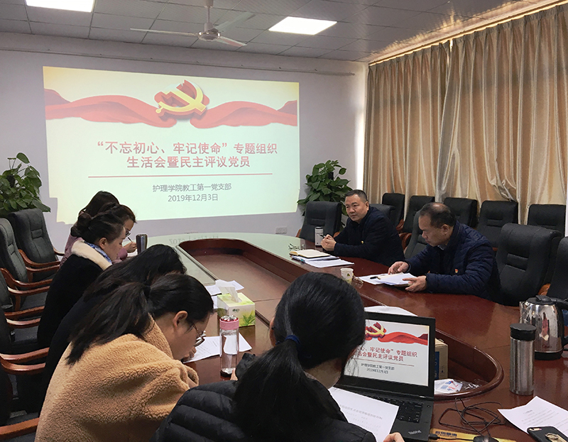 12月3日上午,护理学院教工第一党支部在赣校区召开“不忘初心,牢记使命”主题教育专题组织生活会。学校党委委员、副校长叶军明到会指导。
