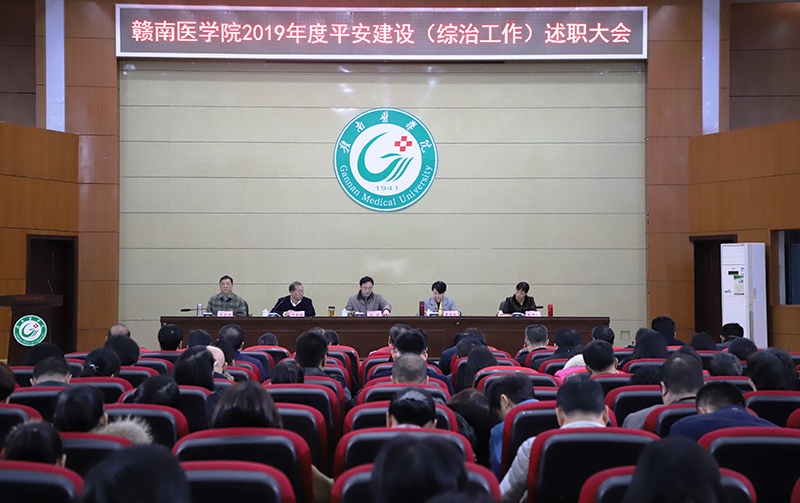 上午,我校在黄金校区多功能厅举行2019年度平安建设(综治工作)述职大会。省考评组黄英琪、焦仲英、王苏州出席述职大会。学校党委副书记、校长刘潜作了述职报告。述职大会由学校党委委员、副校长叶军明主持。