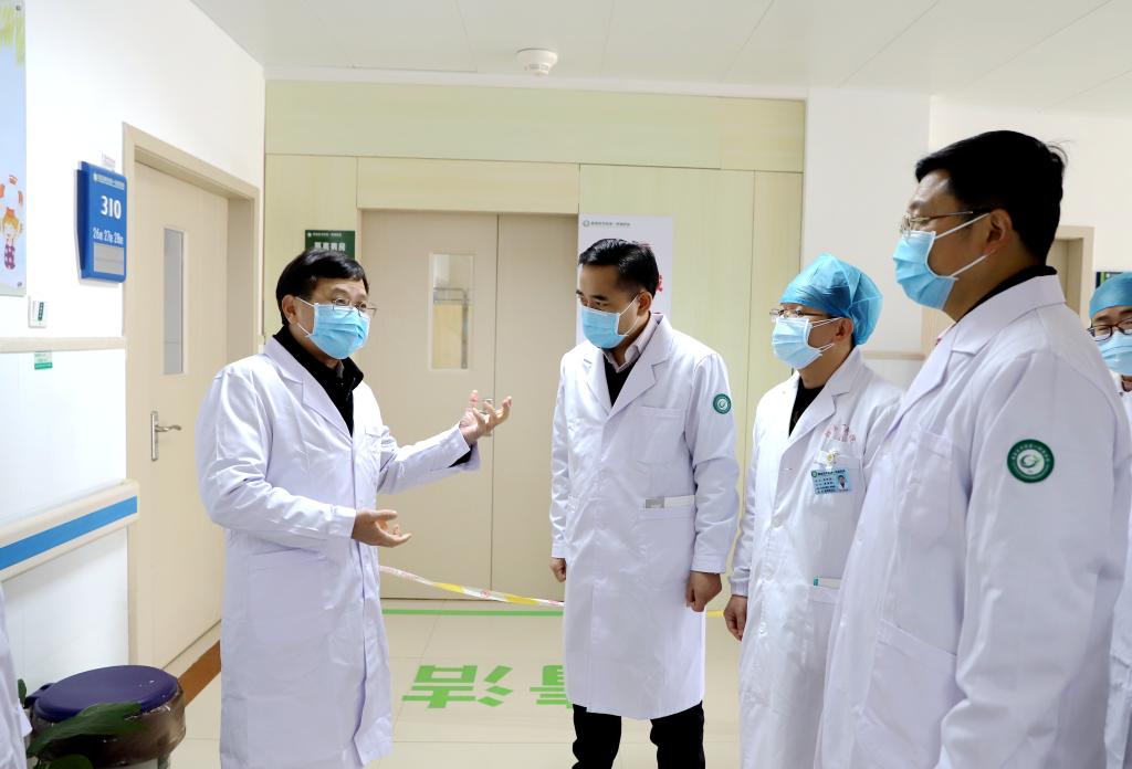 在第一附属医院,李恭进深入黄金院区和章贡院区,实地查看了预检分诊处、发热门诊、隔离区等地,了解防控一线人员的值班情况及工作状态,详细询问了来院病友流量,发热门诊、留观室设置以及应急处置等方面情况,并提出了指导性意见。校党委委员、副校长张小康,一附院党委副书记、院长邹晓峰详细汇报了医院的防控工作。李恭进强调,疫情防控事关人民群众生命健康安全。我省已于1月24日下午启动重大突发公共卫生事件一级响应,医院要高度重视,要认真学习领会贯彻落实习近平总书记重要指示精神,贯彻落实李克强总理重要批示和国务院常务会议精神,按照国务院电视电话会议工作部署要求以及省市、学校防控工作要求,以对人民群众的生命安全和身体健康高度负责的态度,全面做好疫情防控工作。要规范开展对发热可疑病例的鉴别、筛查、诊断治疗处置工作,并做好相关医疗物资储备。要严格落实防止院内感染的各项措施,高度重视医护人员的安全防护,保护好医护人员的身心健康,确保以饱满的状态抗击疫情,坚决打赢这场没有硝烟的疫情防控人民战争。
