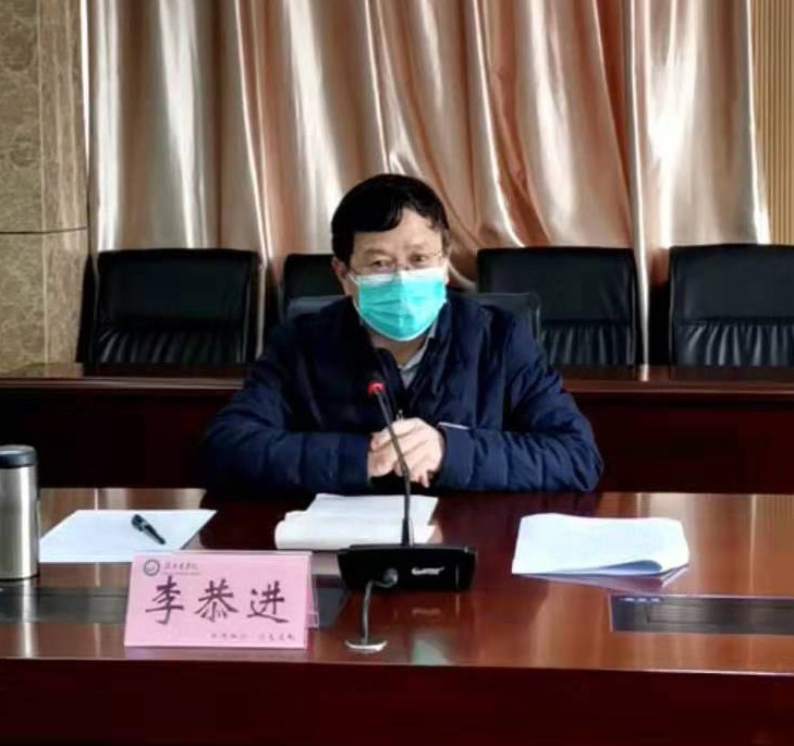 李恭进作了讲话。他充分肯定了我校前期疫情防控工作。李恭进指出,自疫情发生以来,各职能部门忠于职守、积极作为,做了大量艰苦细致、卓有成效的工作,取得了可喜的成绩,特别是一附院在服务地方疫情防控工作方面得到了上级部门认可,作出了医学院校应有的贡献。