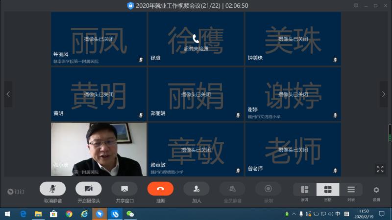 2月19日上午,我校在钉钉视频上召开2020届毕业生就业工作促进会。学校党委委员、副校长张小康出席,招就处、各学院相关人员参加视频会。
