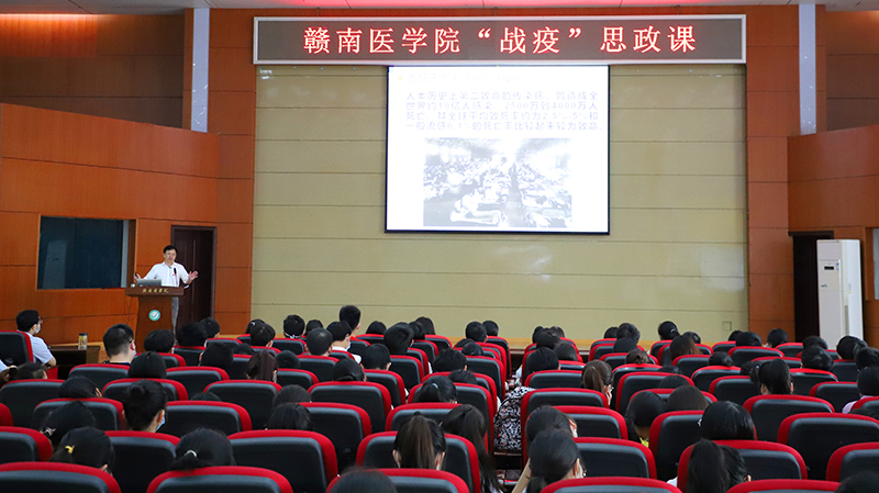 6月10日上午,学校党委书记李恭进在黄金校区办公楼综合报告厅,为学校师生讲授了一堂以“抗疫是部教科书,需要时常去阅读”为主题的战疫思政课,回顾疫情历史,阐释大国担当,讴歌抗疫英雄,传递战疫力量,激励青年学子爱国爱党,奋发向上,学习先进榜样,弘扬抗疫精神,自觉肩负起时代赋予青年的使命与担当,把爱国之情、报国之志化作实际行动,到祖国和人民需要的地方绽放力量、奉献青春。在家学校领导刘潜、曾泽鑫、黄瑞忠、叶军明、肖树辉、张小康出席,各党群部门主要负责同志、各二级党委(总支)书记、全体学工干部、马克思主义学院全体教师及学生代表400余人参加。