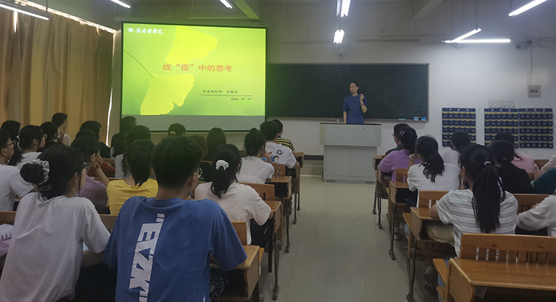7月7日下午,学校党委委员、组织部部长甘雅芬到给联系班级上了一堂以“战‘疫’中的思考”为主题的战“疫”思政课。2019级护理专科(4)班全体学生及护理学院全体学工干部到课聆听。