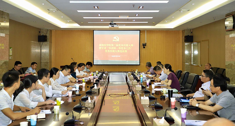 7月14日下午,我校第二届党务技能大赛暨全省“争创第一等党务工作”党务技能选拔赛在黄金校区举行。下属党委(党总支)选派的12名参赛选手用特色鲜明的典型案例,展现了学校各级基层党组织和广大党员发挥战斗堡垒和先锋模范作用,以及在疫情防控、立德树人、医疗卫生服务、决战决胜脱贫攻坚等中心工作、重大任务中顽强拼搏、奋勇争先的精神风貌。