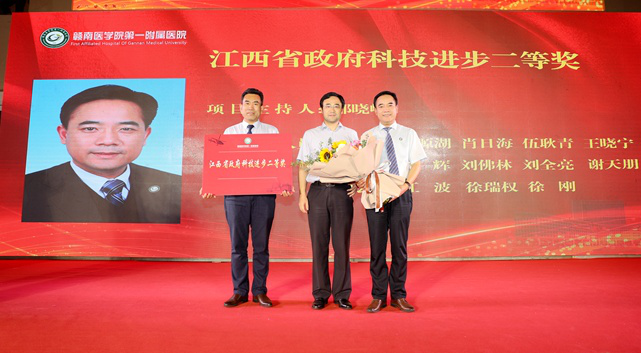 在颁奖环节,刘潜和一附院领导共同为“江西省政府科技进步奖”“江西省政府自然科学奖”“江西青年五四奖章”“抗疫医疗队员先进个人”“抗疫最美家庭”“赣州市医师奖”“30年医疗服务功勋”“赣医一附院名医”“赣医一附院十大服务明星”“赣医一附院优秀医师”“最喜爱的带教老师”称号获得者及“住院医师培训及技能竞赛”“病案质量竞赛”“6S精益管理成果竞赛”“第四届江西省高校青年教师教学竞赛”“赣南医学院青年教师教学竞赛”“青年教师教学竞赛”获奖科室或个人颁了奖。