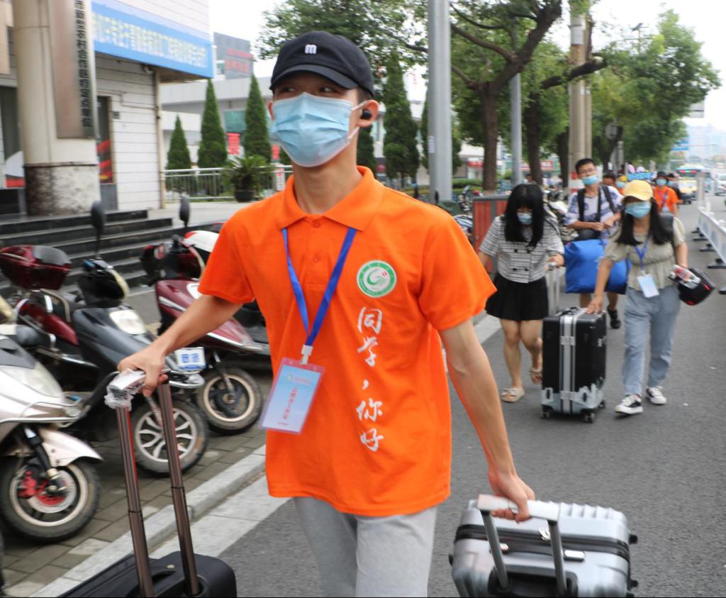 一句简单的问候,是我们的志愿者们送给新生和家长们的第一份礼物,在今年的迎新志愿服设计过程中,特别选用了象征秋天丰收的金黄色色彩,搭配“同学,你好!”几个醒目大字,从新生来到赣州、进入赣医的那一刻,就让他们深刻感受到赣医校园的文明素养。
