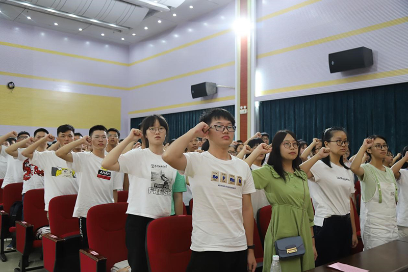 在刘潜校长和抗“疫”医护人员代表的见证下,2020级新生用坚定嘹亮的声音许下了医学生誓言。