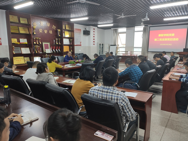 9月28日下午,学校党委委员、纪委书记肖树辉为康复学院第二党支部上了题为“共产党员要加强个性修养”的党课,康复学院第二党支部全体党员及部分师生代表参会。