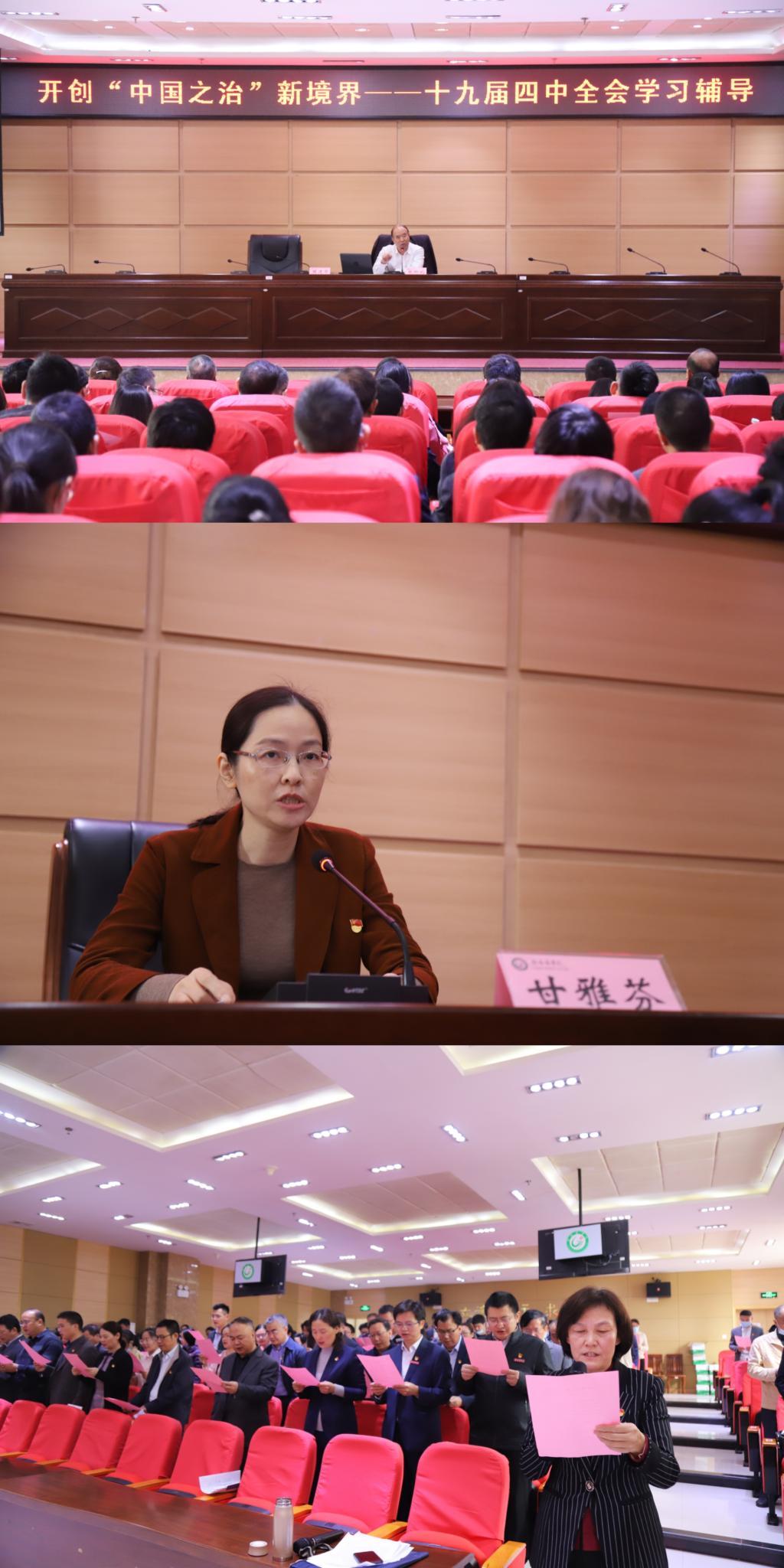 在上午开班的仪式教学中,参训学员重温了入党誓词,学唱《我宣誓》,聆听了赣州市委党校张卿均教授所作的专题辅导报告“开创‘中国之治’新境界——十九届四中全会学习辅导”。下午聆听了中央苏区医疗卫生史与健康中国战略研究中心钟继润教授“弘扬红医精神,坚定理想信念”和党委宣传部副长汪行舟“找准意识形态工作着力点”的专题课。