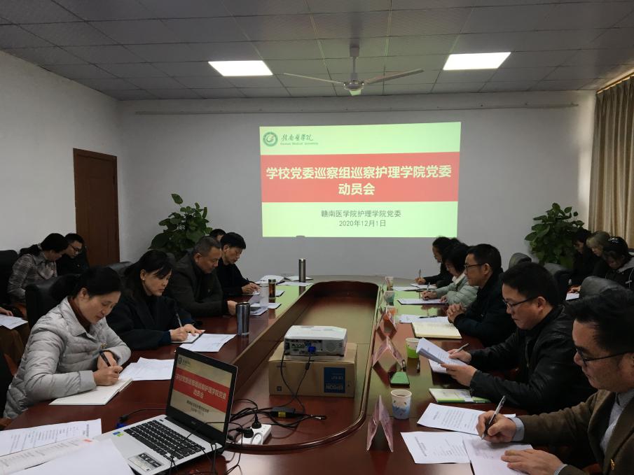 12月1日下午,学校党委巡察组巡察护理学院党委工作动员会召开,学校纪委副书记、党委巡察组组长邓文明,副组长陈杰斌及巡察组成员出席会议。护理学院副处级以上干部、党支部书记、科室负责人、高级职称人员和学生党员代表参加会议,该院党委书记陈志远主持会议。