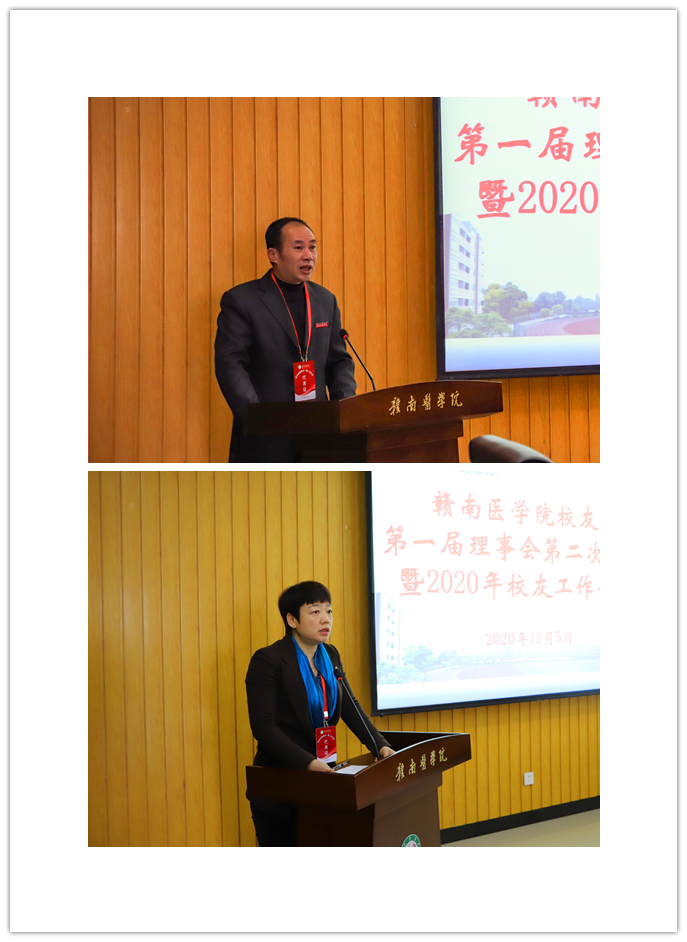 校友会会长、校党委委员、统战部部长赖传景作赣南医学院校友会2020年工作报告、2020年财务工作报告。校友会秘书长、校友办主任陈联娇向各位理事、校友介绍了我校建校80周年校庆筹备情况以及校友捐赠相关事宜。